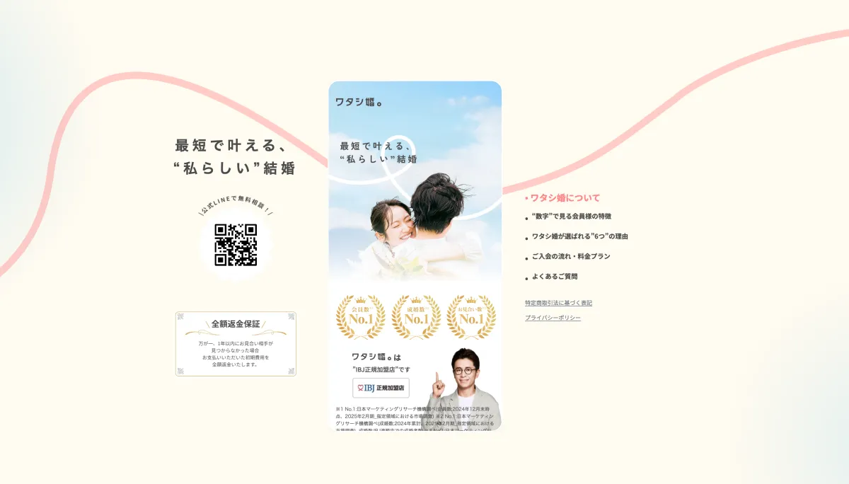「ワタシ婚。」は、従来の結婚相談所のイメージを覆します。「婚活=最後の手段」というネガティブな固定観念を脱し、多様な価値観を持つ現代人に寄り添ったサービス展開をしています。特に、マッチングアプリでの疲労感を感じている世代に向けて、シンプルで誠実な出会いを提供することで、信頼と安心感を生み出しています。