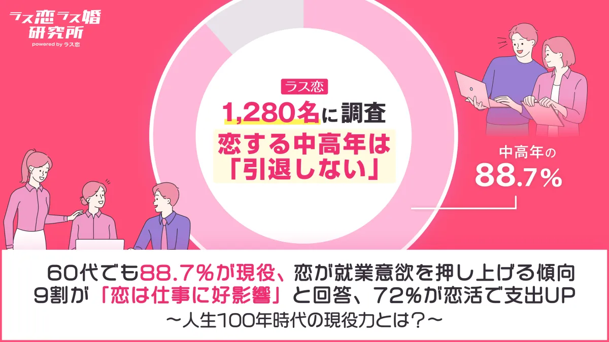 近年、恋愛は中高年の生活において重要な役割を果たしていることが明らかになっています。株式会社ラス恋が実施した調査によると、60代の88.7%が現役で働き続けており、その背景には恋愛が職業に与える良い影響があるとされています。実に、参加者の91.6%が「恋は仕事に好影響を与える」と感じており、この調査結果から中高年の恋愛が彼らの生活意欲や消費意欲を高めていることが分かります。