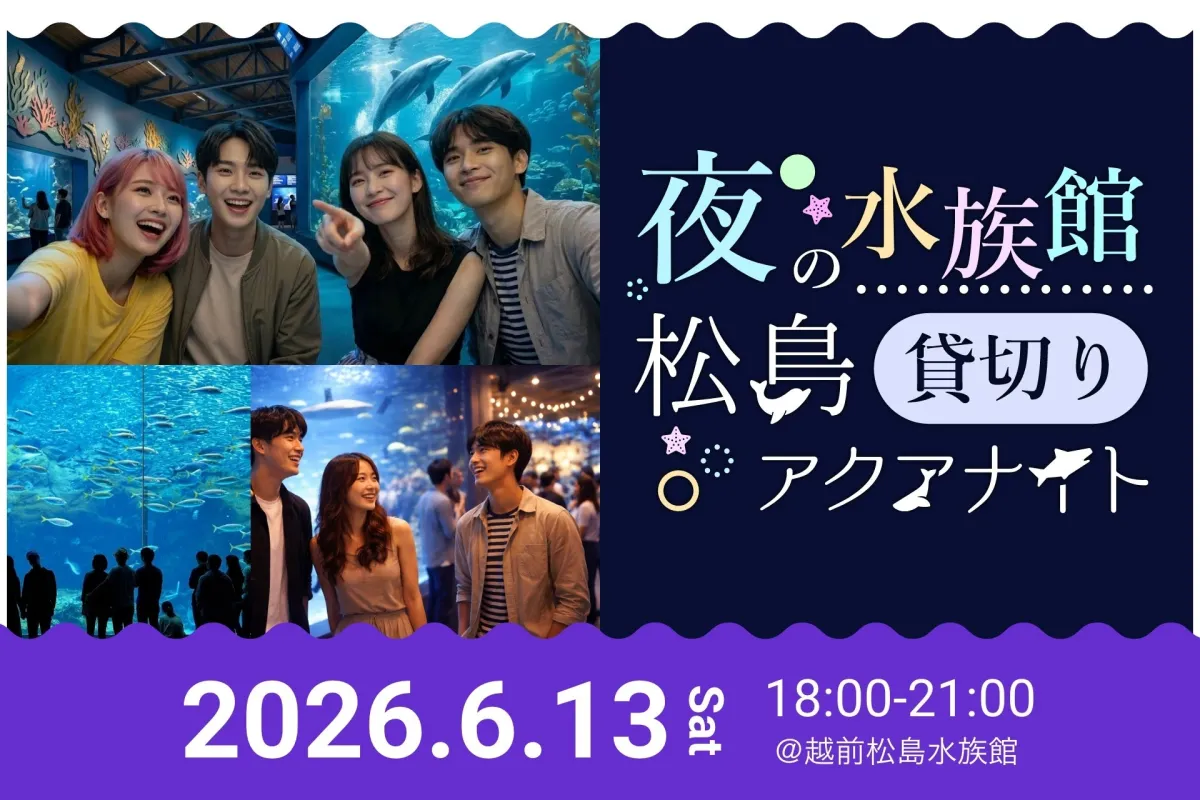「松島アクアナイト」は、2026年6月13日の18:30から21:00に越前松島水族館で開催されます。20歳以上の独身男女が対象で、定員は800名です。特別な体験ができるこの機会をお見逃しなく!