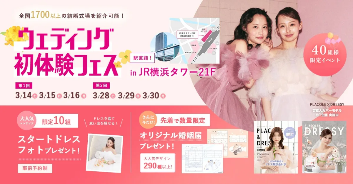 結婚式を控えているカップルにとって、準備は楽しいけれども大変な作業の連続です。そんな中、特別なイベントが横浜で開催されることが決定しました。3月14日(土)から16日(月)までの3日間、JR横浜タワーの21階に位置する「DRESSY ROOM YOKOHAMA」にて、ウェディング初体験フェスが行われます。このイベントは、これから結婚を考えているカップル専用のもので、個室での相談や、豪華特典としてウェディングドレスの試着が体験できる貴重なチャンスです。参加は40組様限定、事前予約制で無料です。