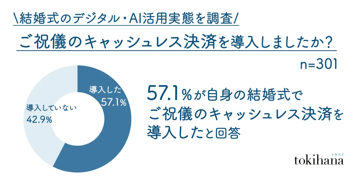 株式会社トキハナが実施した調査によると、2024年から2026年に結婚式を挙げる予定の20〜30代の男女301名を対象に、結婚式におけるデジタルとAIの活用実態が明らかになりました。デジタル化が進む現代において、結婚式の準備も大きく変わりつつあります。