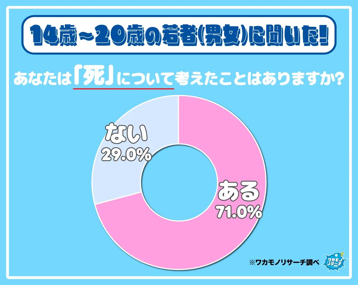 近年、全国の14歳から20歳の若者を対象に実施された調査では、70%を超える若者が過去に死について考えたことがあると答えています。この結果から、現代の若者がどのようにして「死」というテーマを意識するようになるのかについて、詳しく見ていきます。
