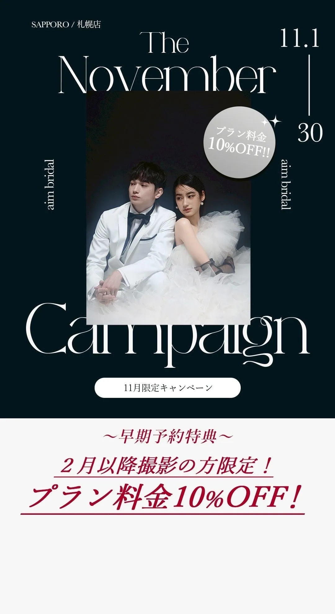 11月限定!aim札幌店のブライダル・ソロキャンペーン情報