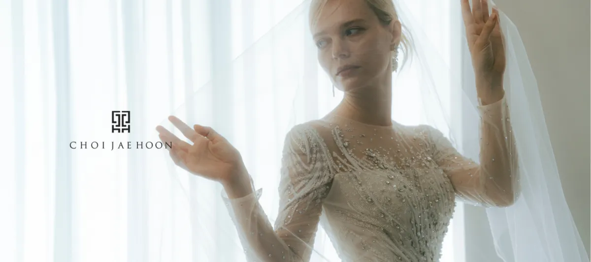 「CHOIJAEHOON」は、洗練されたデザインと細部へのこだわりで韓国国内外のセレブリティたちからも非常に高く評価されています。このブランドは「時を超えて変わらない美しさ」をテーマに掲げ、人生の最も特別な瞬間を永遠に記憶させるためのウェディングドレスを提供しています。豊富な高級素材と凹凸のあるディテールが寄与するその魅力が、多くの花嫁を虜にしています。