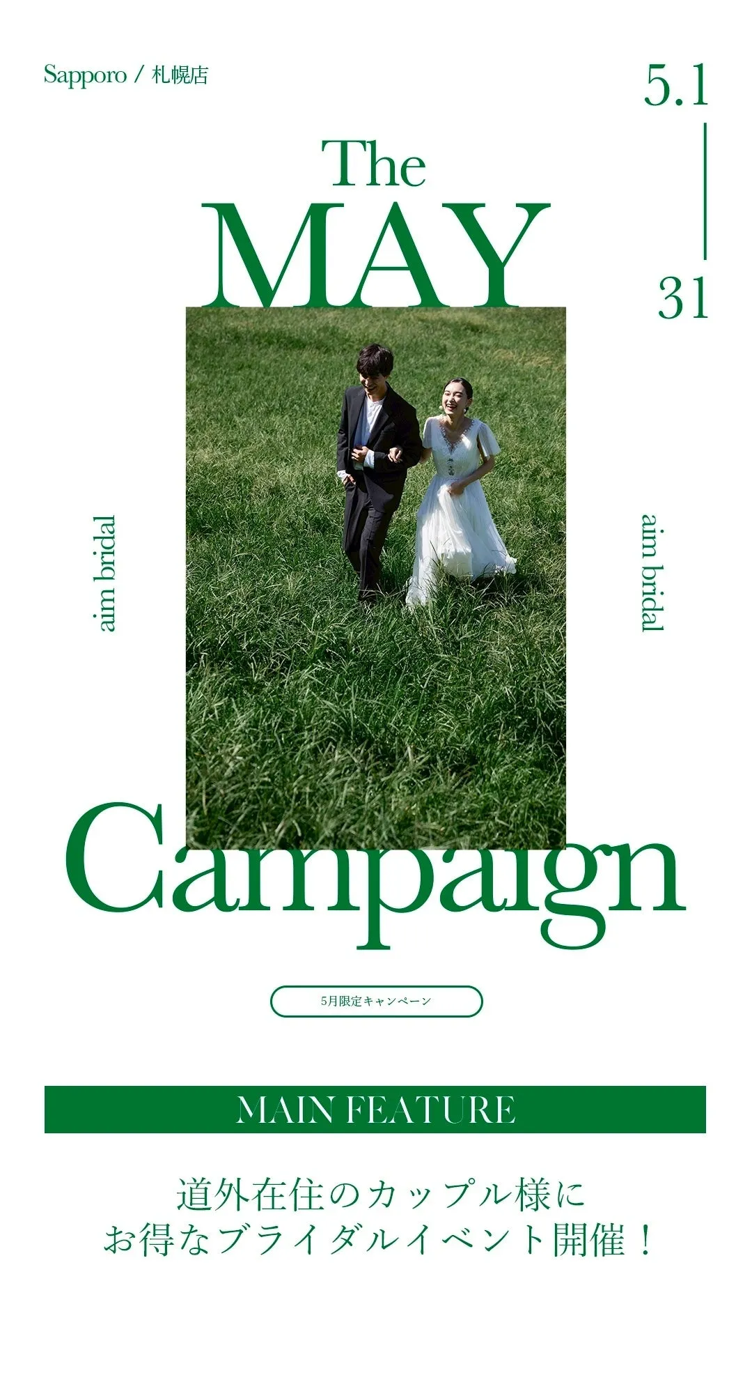 この5月の特別なブライダルイベントは、道外カップルにとって理想的な機会です。お得なプランと豊富な特典で、結婚式に向けた準備をスムーズに進めていきましょう。詳細なプランやご相談は、ぜひお近くのcreative photo studio aimまでご連絡ください。新しい思い出を形にして、素敵な日常を一緒にお楽しみしましょう。