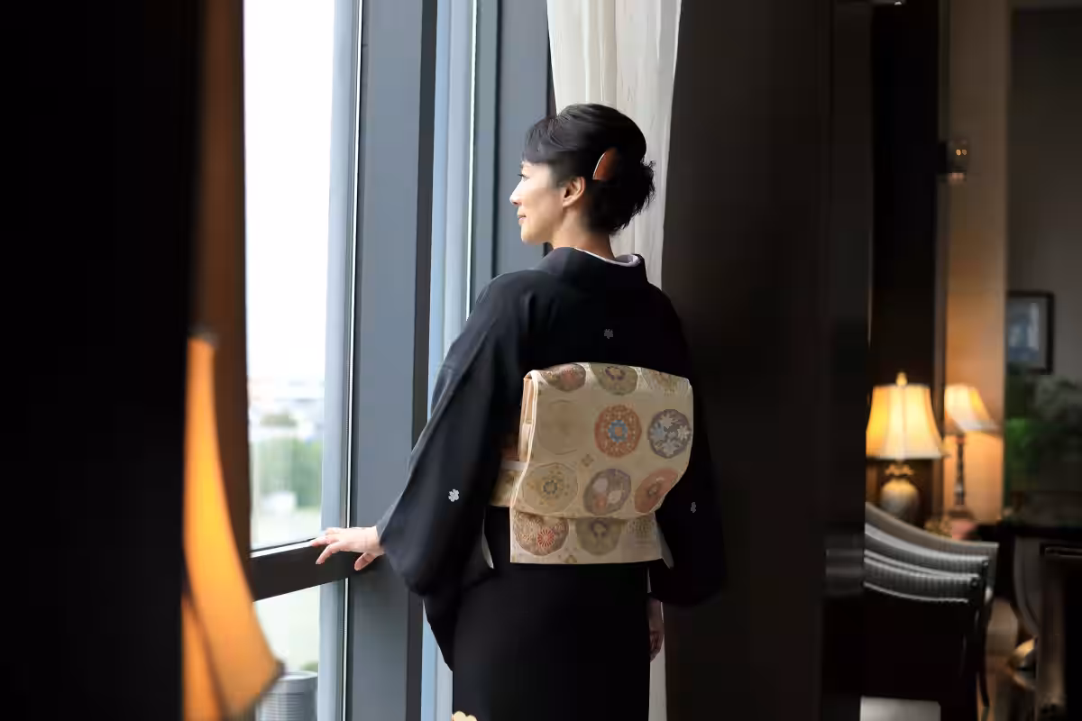 黒留袖は、格調高く、気品を感じさせる特別な装いです。染めの技術を駆使した黒の色合いは、深みと美しさを感じさせます。日本の文化に根付いた儀式に相応しい装いとして、多くの列席者に選ばれています。